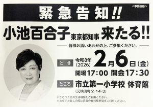 令和5年1月22日(日)に八王子横山町に設置しました「にしむろ真希本部事務所」の開所式を行いました。お忙しい中たくさんの方にお越しいただき、誠にありがとうございました。 当日の様子をyoutubeにアップしておりますので […]